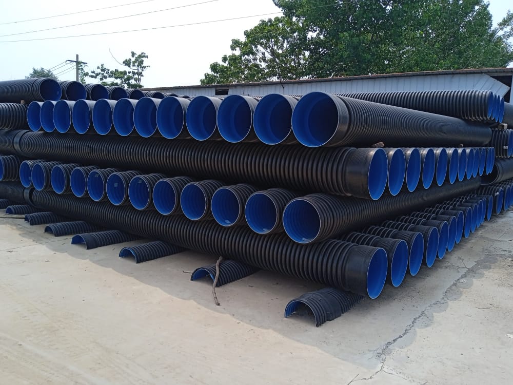 高密度聚乙烯(HDPE)雙壁波紋管是90年代初開發出來的一種新型的排水排污工程管材,設計構思、獨特的中空結構,使它不僅有塑料管所具有的耐腐蝕性好、絕緣性強、內壁光滑、流動阻力減小、使用壽命長以外,更具有優異的環剛度和良好的強度與韌性,以及重量輕、耐沖擊性強、不易破碎等特點;此外,與混泥土、鋼管、鑄鐵等管對比,還具有運輸、安裝方便,降低施工人員勞動強度,降低工程投資成本等優勢,是替換混泥土、鋼管、鑄鐵等管的理想產品。目前,在國外,尤其是美國、日本、加拿大、以及歐洲許多發達國家的市政排水排污、農業灌溉、礦井通風、產業集聚區、化工廠房等諸多領域得到廣泛應用。